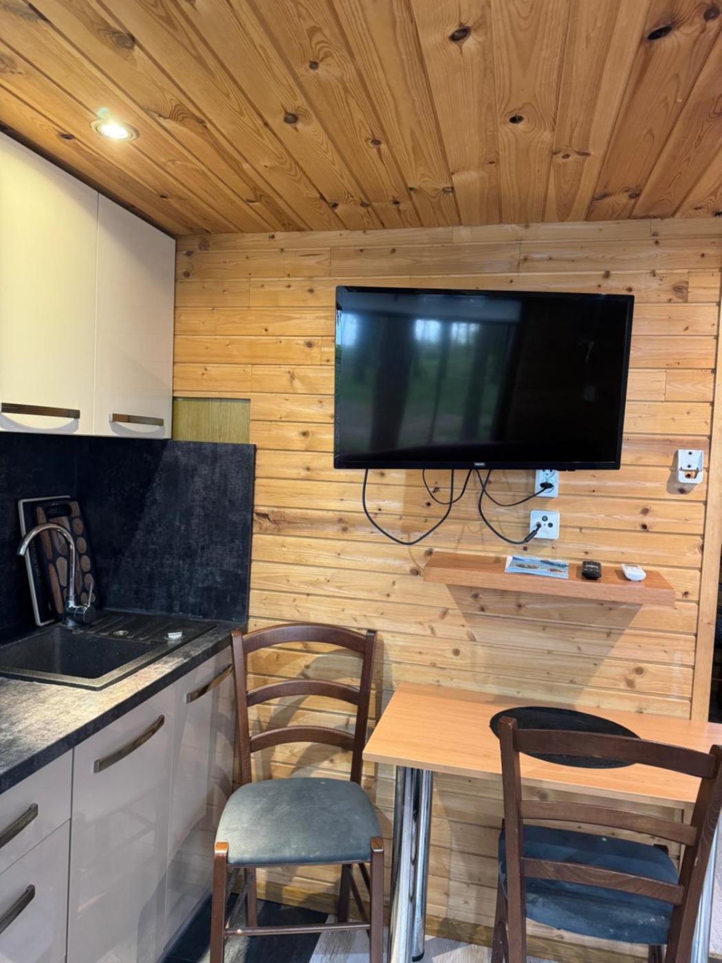 Domek z 1 sypialnią. This chalet comes with 1 living room, 1 separate bedroom and 1 bathroom with a shower. The kitchen features a refrigerator, kitchenware and an electric kettle. This chalet has a dining area, a wardrobe, a flat-screen TV and a terrace. The unit has 3 beds. Domek - 4 osobowy. Powierzchnia pokoju ok.: 25 mkw. ;