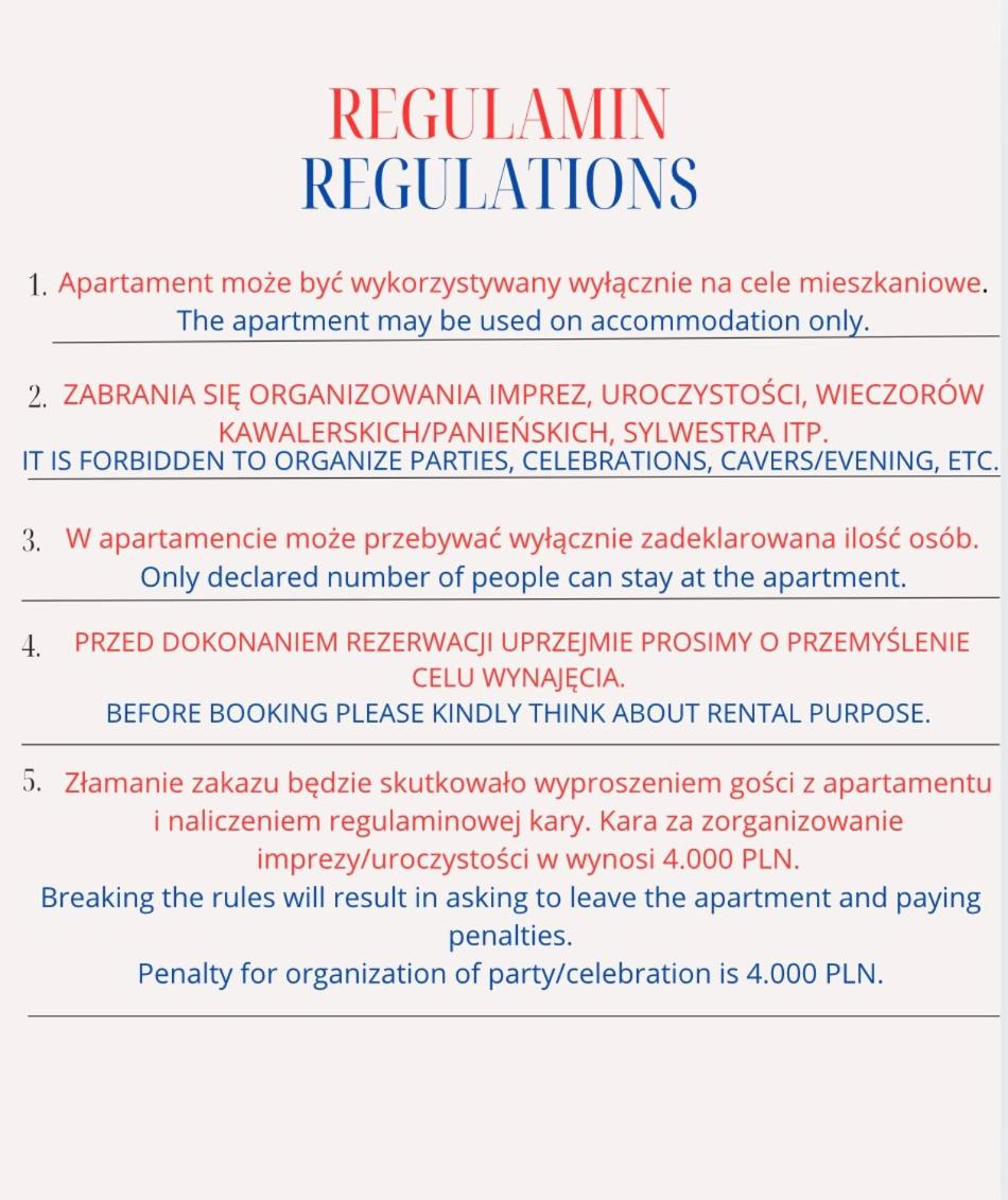 Apartament z 1 sypialnią. This apartment consists of 1 living room, 1 separate bedroom and 1 bathroom with a shower and free toiletries. The well-equipped kitchenette has a stovetop, a refrigerator, a dishwasher and kitchenware. This apartment is air-conditioned and features a seating area with a flat-screen TV, a washing machine, soundproof walls, a tea and coffee maker, as well as a dining area. The unit offers 2 beds. Apartament - 3 osobowy. Powierzchnia pokoju ok.: 44 mkw.