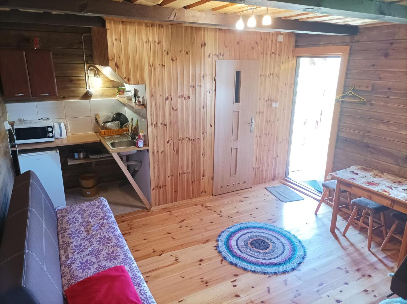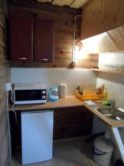 W domku letniskowym zapewniono aneks kuchenny z lodówką, mikrofalówką i czajnikiem.