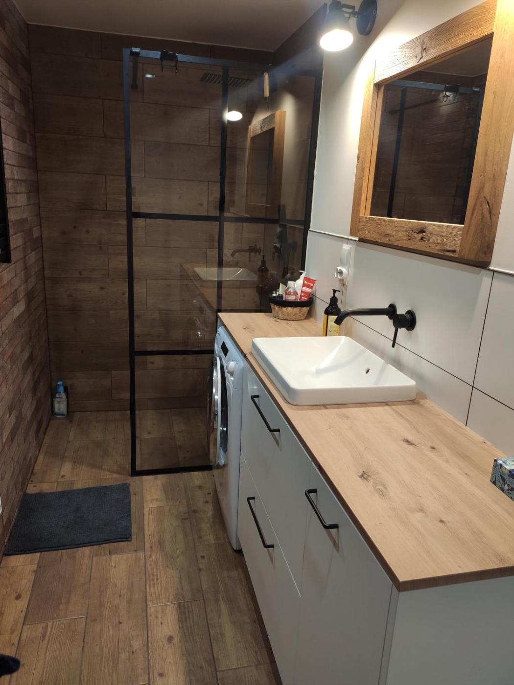 Dom z 1 sypialnią. This holiday homes special feature is the sauna. The holiday homes kitchen, which features kitchenware, is available for cooking and storing food. The air-conditioned holiday home provides a flat-screen TV, a washing machine, a private entrance, a wardrobe as well as garden views. The unit offers 4 beds. Dom wakacyjny - 5 osobowy. Powierzchnia pokoju ok.: 48 mkw.