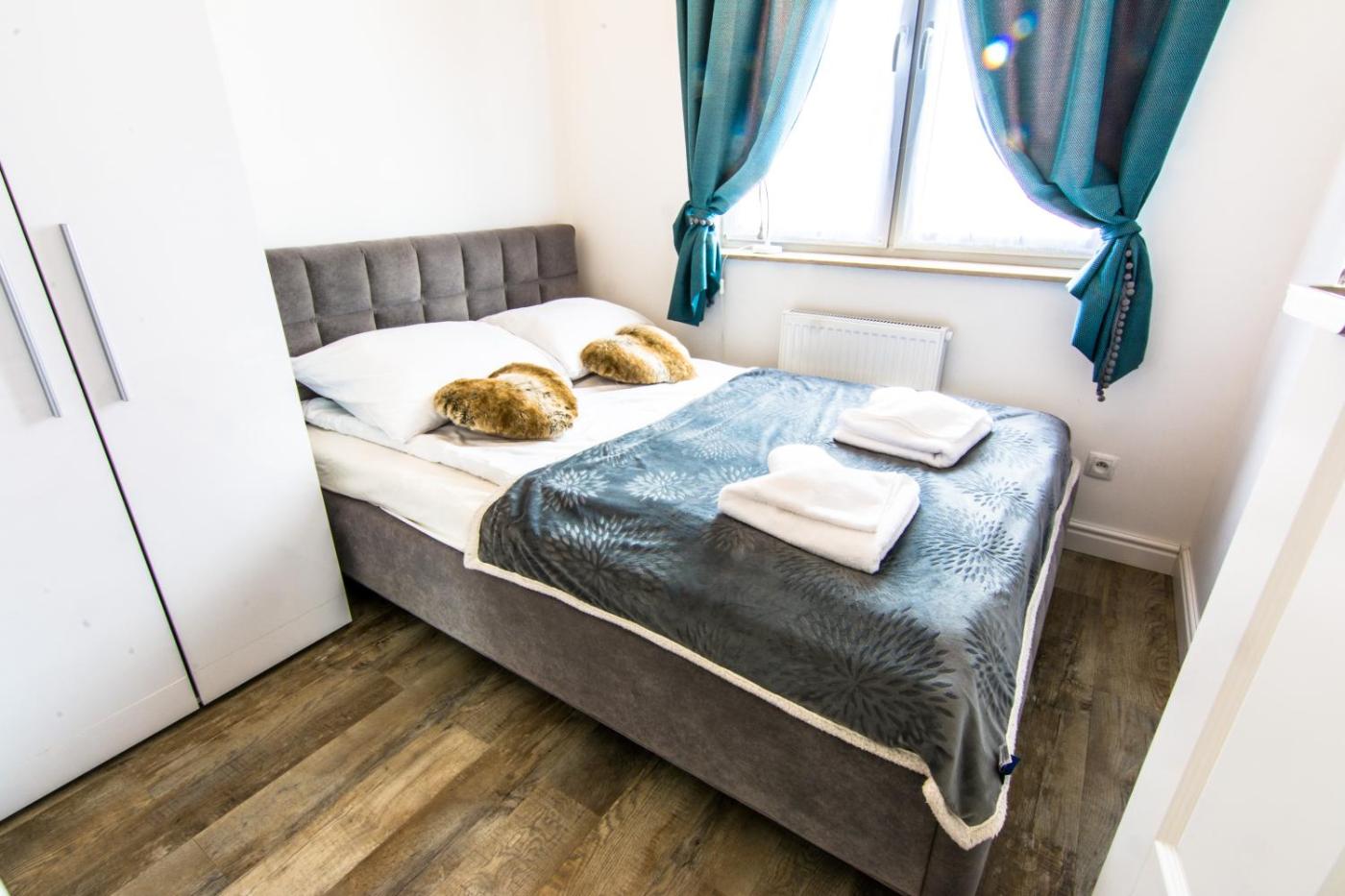 Apartament z 1 sypialnią (Całoroczny). Boasting a private entrance, this apartment includes 1 living room, 1 separate bedroom and 1 bathroom with a shower and a hairdryer. The fully equipped kitchen has a stovetop, a refrigerator, a dishwasher and kitchenware. Featuring a balcony with ancourtyard view, this apartment also offers a washing machine and a flat-screen TV. The unit has 2 beds. Apartament - 4 osobowy. Powierzchnia pokoju ok.: 43 mkw. ;