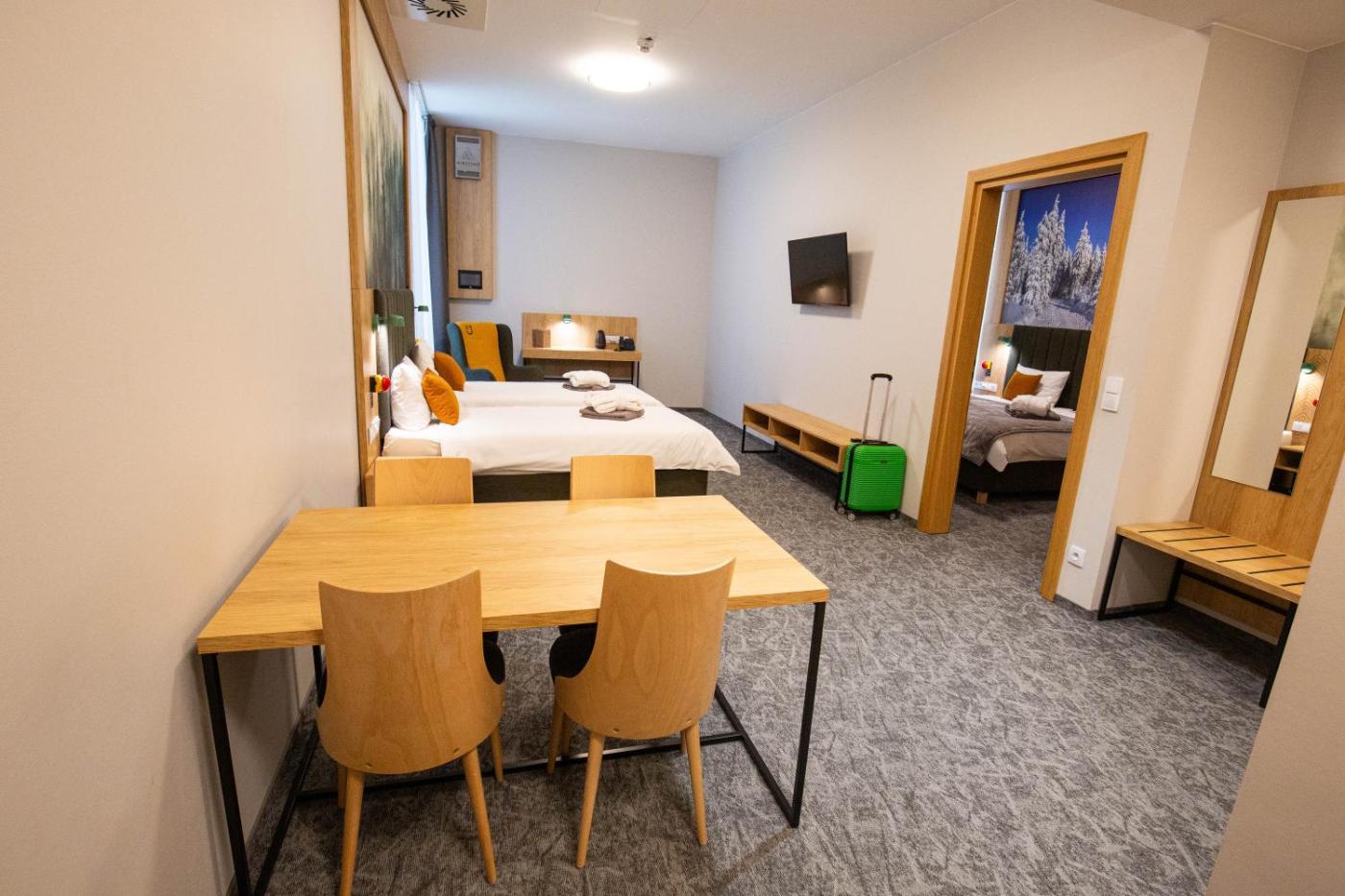 Pokój Trzyosobowy typu Basic. Jest to pokój trzyosobowy, który mieści prywatną łazienkę z prysznicem typu walk-in i suszarką do włosów. Na gości czekają szlafroki, kapcie i bezpłatne przybory toaletowe. Pokój jest ogrzewany oraz wyposażony w telewizor z płaskim ekranem i dostępem do kanałów kablowych, a także zestaw do parzenia kawy i herbaty. Podłoga została w nim wyłożona wykładziną. Z okien roztacza się widok na góry. Pokój Trzyosobowy - 3 osobowy. Powierzchnia pokoju ok.: 24 mkw. ;