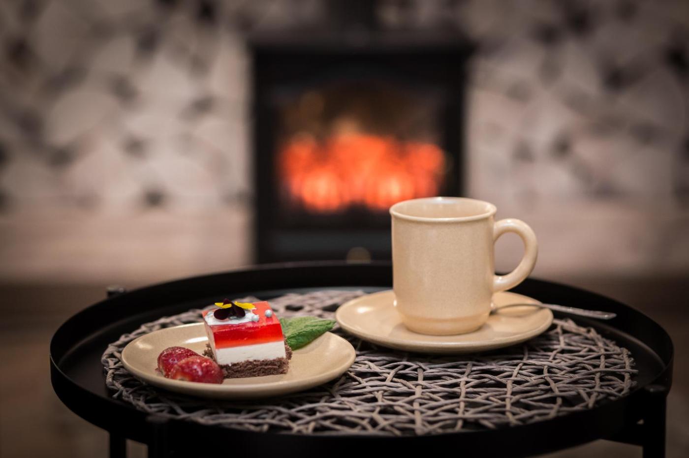 Pokój rodzinny z tarasem. This family room features a fireplace. The spacious family room features a coffee machine, a seating area, a terrace with garden views as well as a private bathroom boasting a walk-in shower. Rodzinny - 4 osobowy. Powierzchnia pokoju ok.: 45 mkw. ;